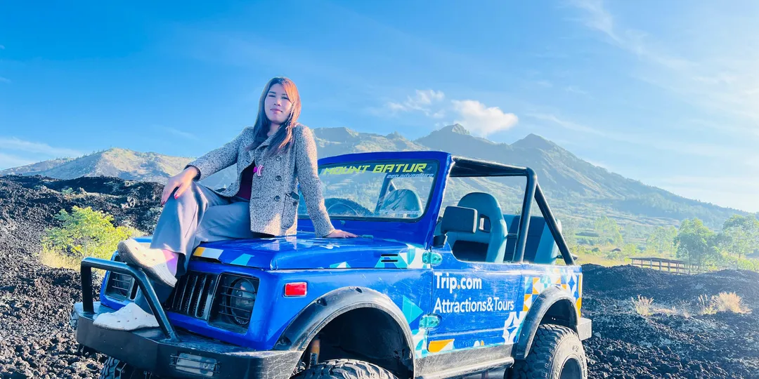 • Berkendara melintasi medan terjal dengan kendaraan 4WD dan saksikan matahari terbit yang ajaib di atas Gunung Batur dari sudut pandang panorama.